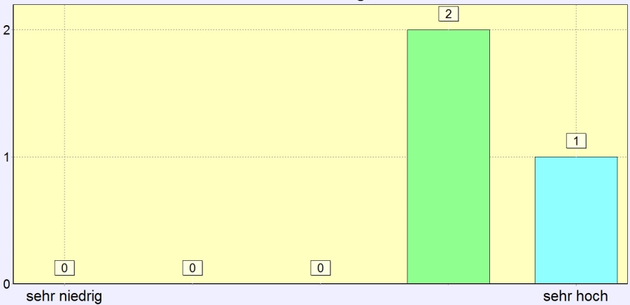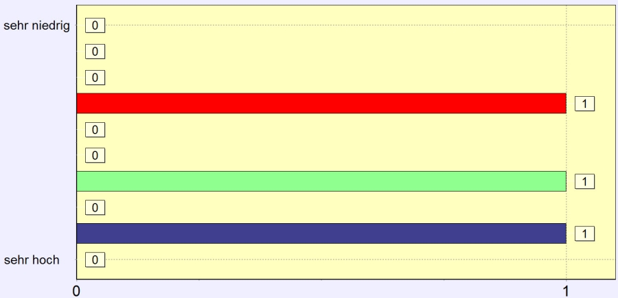 | sehr niedrig | 1 | 2 | 3 | 4 | 5 | 6 | sehr hoch |