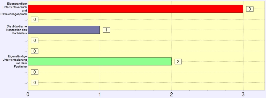 | Unterrichtshospitationen beim Fachleiter | Didaktische Diskussionen mit dem Fachleiter | ||