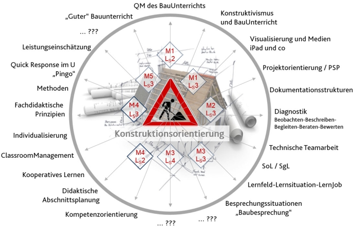 Das Fachseminar Bau- und Holztechnik ist im Studienseminar Neuwied modular und ausbildungsgruppenübergreifend angelegt. In jedem Semester (Schulhalbjahr) sind drei bis vier halbtägige Fachseminare vorgesehen. Die Inhalte der Seminare und den semesterorientierten Schwerpunktbereich legen die Referendare (fachbezogen) zusammen mit mir fest. Dabei ergibt sich eine große Vielfalt lernfeldbezogener und unterrichtspraktischer Problemstellungen (Forschungsfragen). | ![]() |
